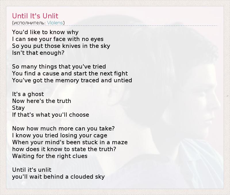 А как ты думаешь, о чем песня "Until It's Unlit" ?