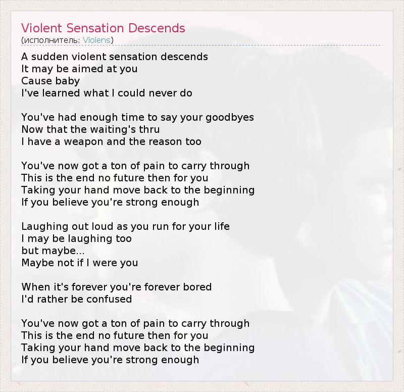 А как ты думаешь, о чем песня "Violent Sensation Descends" ?