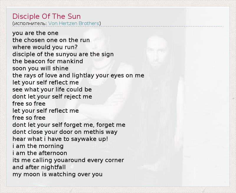 А как ты думаешь, о чем песня "Disciple Of The Sun" ?