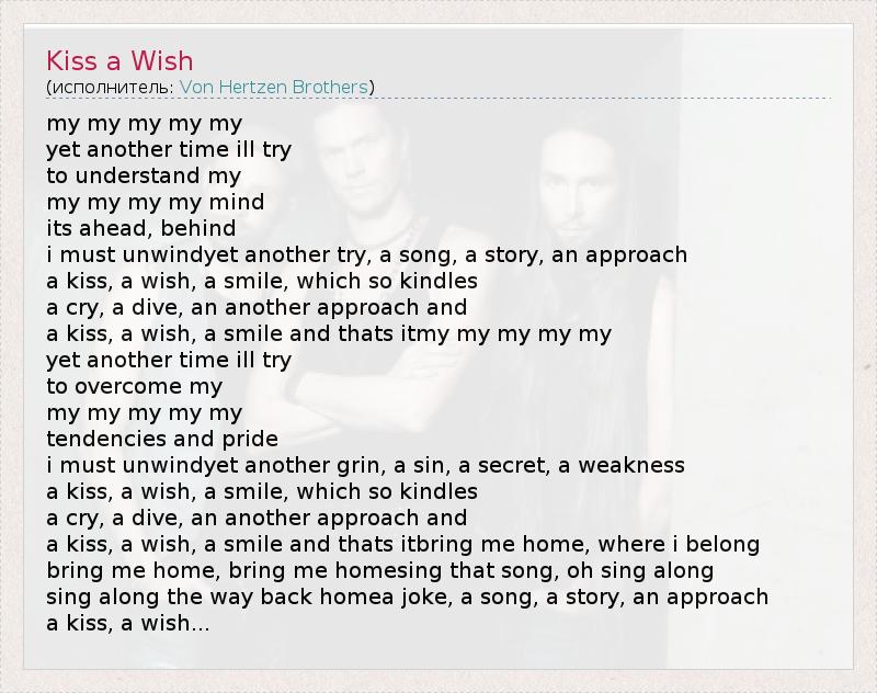 А как ты думаешь, о чем песня "Kiss a Wish" ?