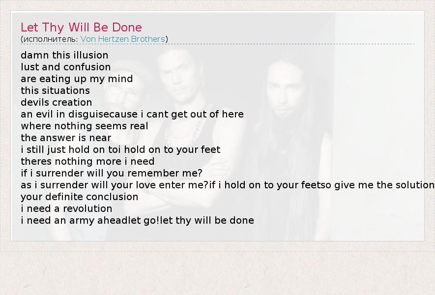 А как ты думаешь, о чем песня "Let Thy Will Be Done" ?
