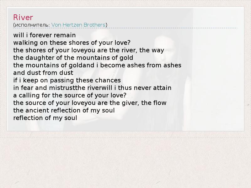 Это интересно:Von Hertzen Brothers - финская прогрессив-рок-группа, основанная в 2001 тремя братьями Jonne von Hertzen, Kie von Hertzen и Mikko von Hertzen. Наибольшее влияние на них оказали такие коллективы, как Led Zeppelin, Deep Purple, Pink Floyd и Kingston Wall. На счету у группы 4 альбома: Experience (2001), Approach (2006), получивший финскую музыкальную награду Emma как лучший рок-альбом 2006 года, Love Remains the Same (2008) и Stars Aligned (2011).... продолжение