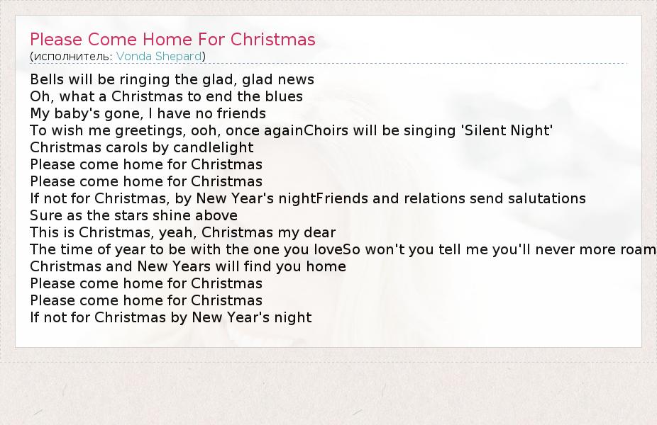 А как ты думаешь, о чем песня "Please Come Home For Christmas" ?
