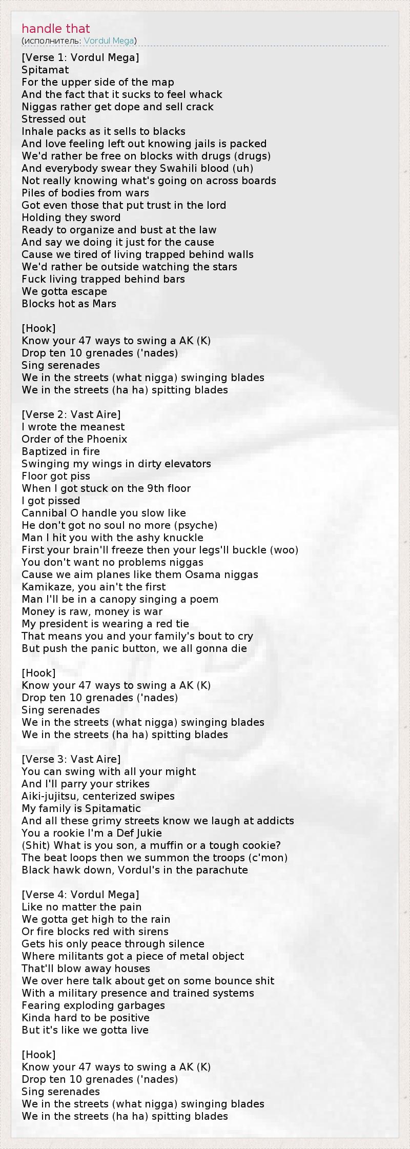 А как ты думаешь, о чем песня "handle that" ?