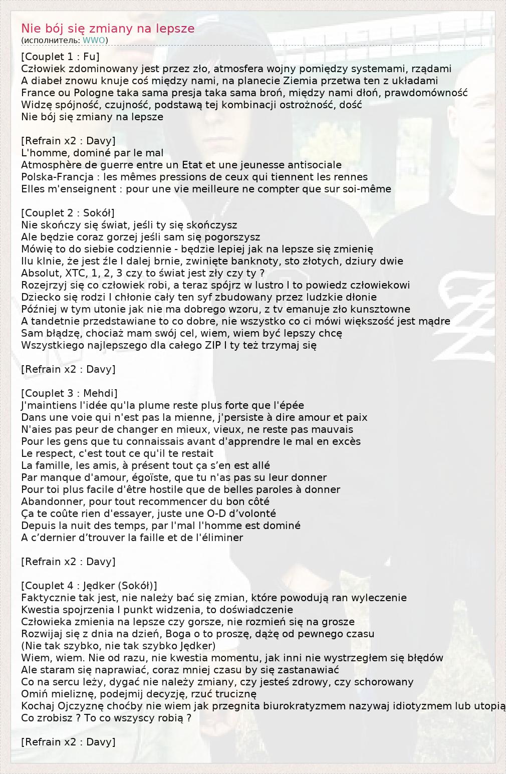 ГлавнаяИсполнителиWWONie bój się zmiany na lepsze