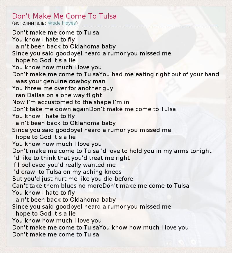 А как ты думаешь, о чем песня "Don't Make Me Come To Tulsa" ?