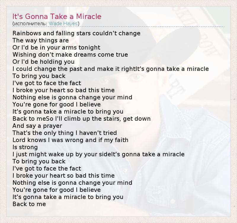 А как ты думаешь, о чем песня "It's Gonna Take a Miracle" ?