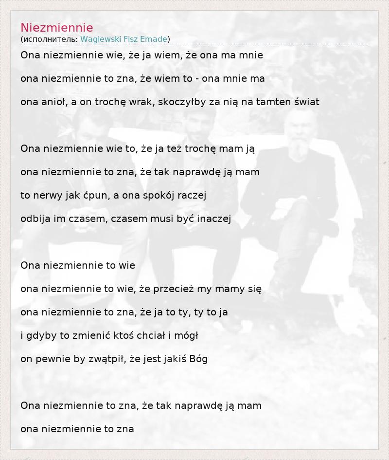 А как ты думаешь, о чем песня "Niezmiennie" ?