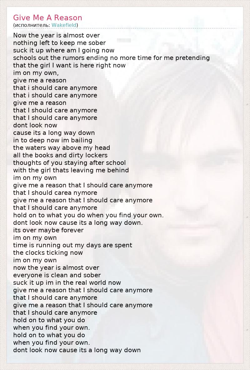 А как ты думаешь, о чем песня "Give Me A Reason" ?