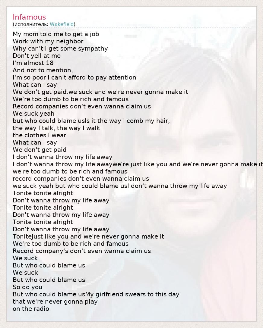 А как ты думаешь, о чем песня "Infamous" ?