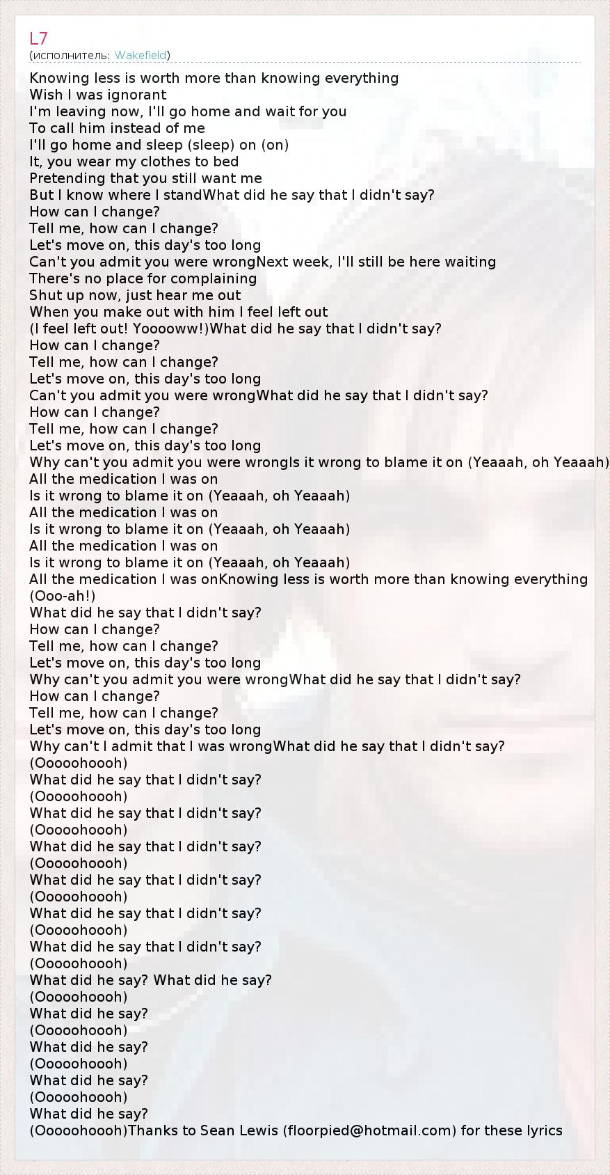 (Ooooohoooh)Thanks to Sean Lewis (floorpied@hotmail.com) for these lyrics