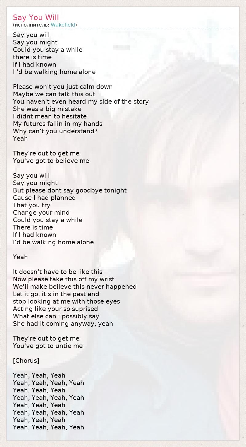 Это интересно:Группа Wakefield это практически кучка родственников родом из Mechanicsville, Maryland. В ее состав входят два брата Ryan и Aaron Escolopio, их двоюродный брат Mike Schoolden и J.D. Tennyson. Ryan, JD и Mike собрали команду в 2000 вместе со своим другом Mark Martinez. Поначалу группа играла в местных клубах, а в 2001 Wakefield разогревали Good Charlotte. Постоянное сравнение с GC пошло им на пользу, так как группа твердо решила что-то делать, чтобы укрепить... продолжение