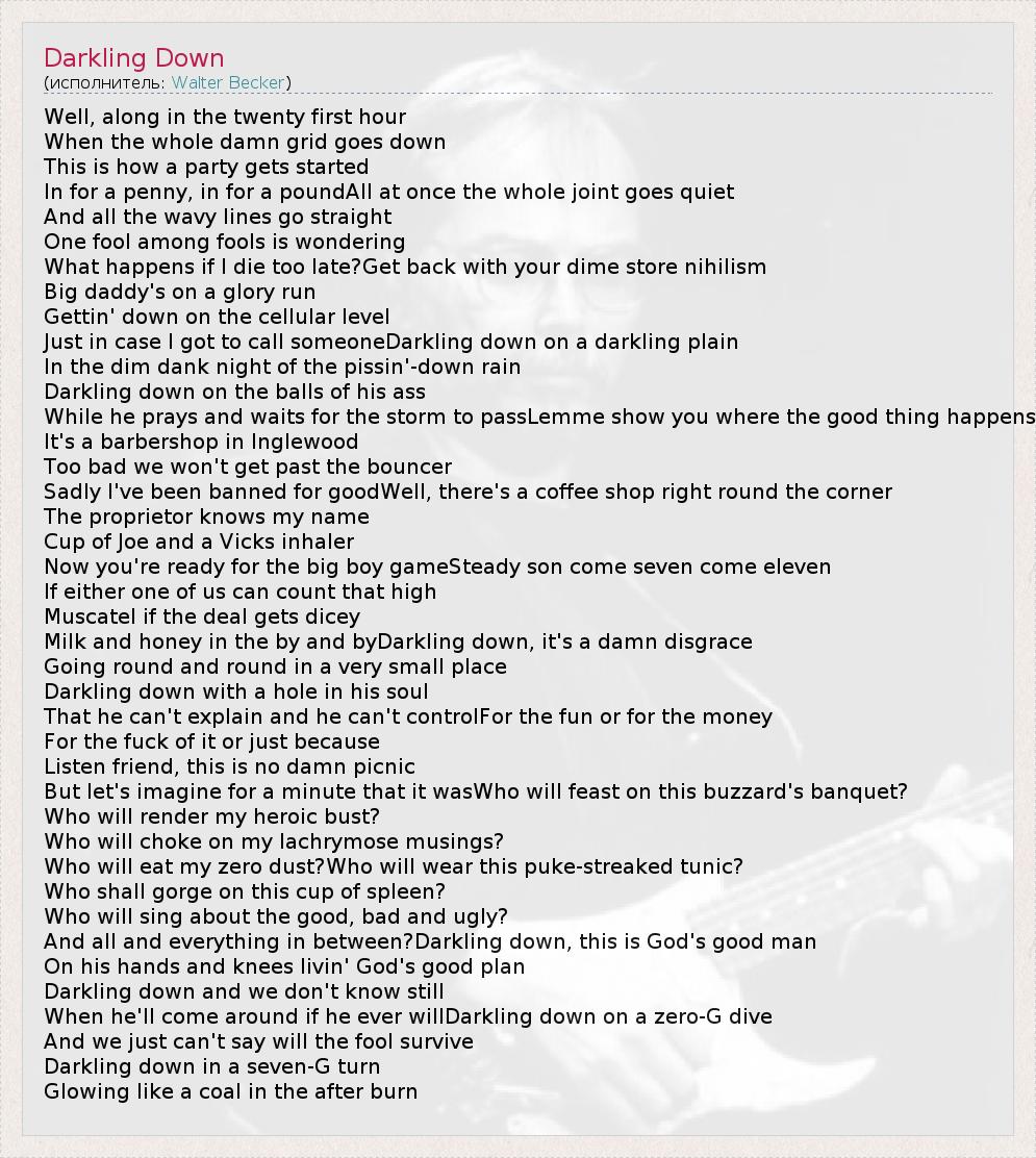 А как ты думаешь, о чем песня "Darkling Down" ?