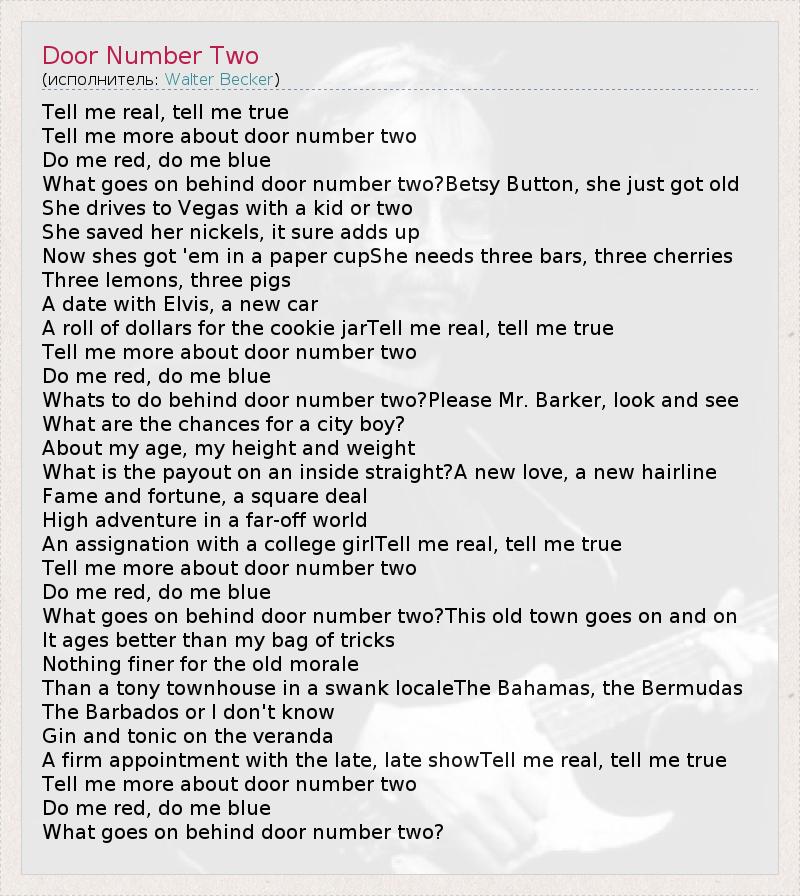 А как ты думаешь, о чем песня "Door Number Two" ?