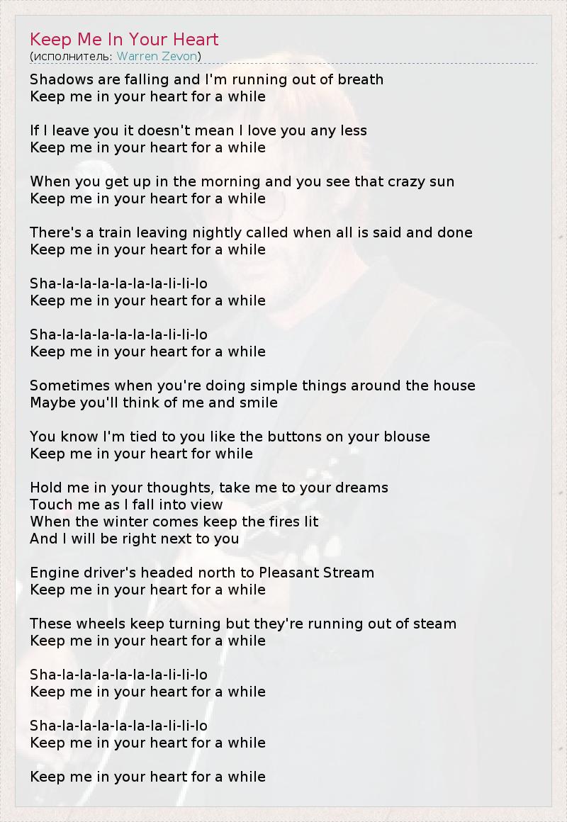 А как ты думаешь, о чем песня "Keep Me In Your Heart" ?