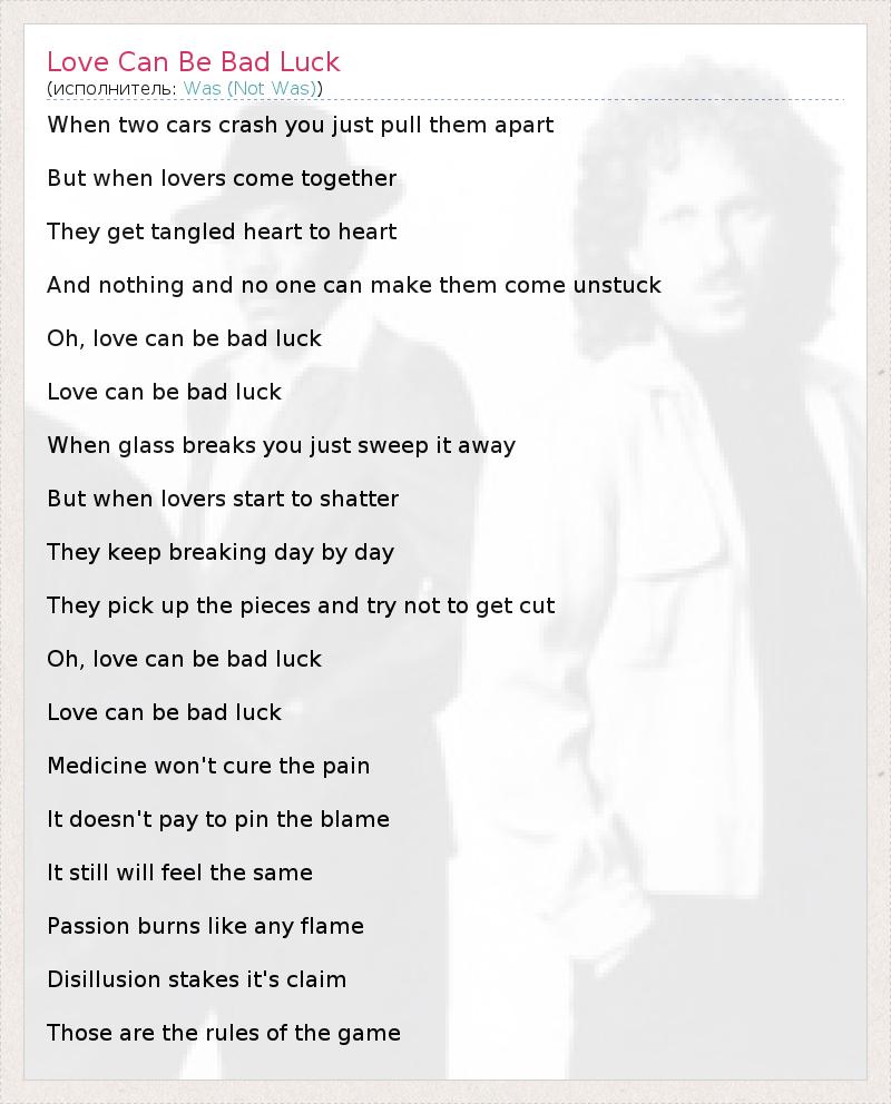 А как ты думаешь, о чем песня "Love Can Be Bad Luck" ?
