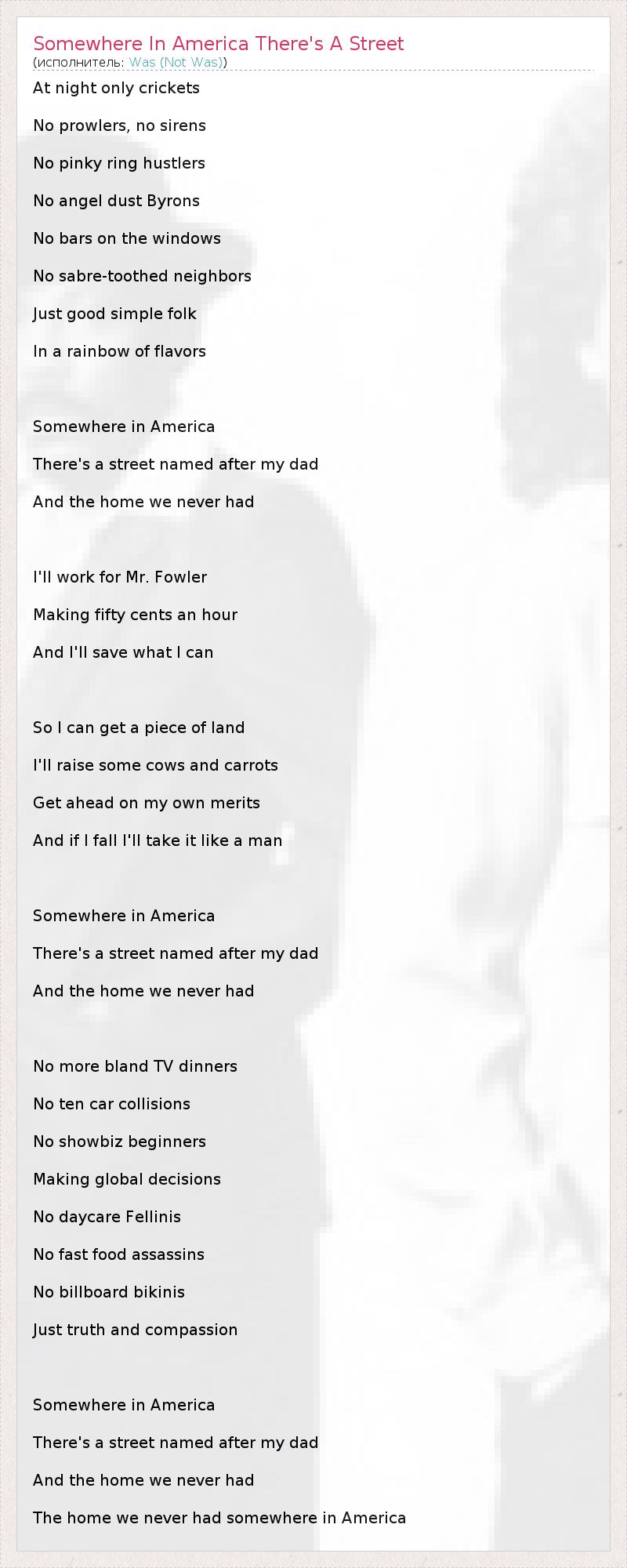 А как ты думаешь, о чем песня "Somewhere In America There's A Street" ?