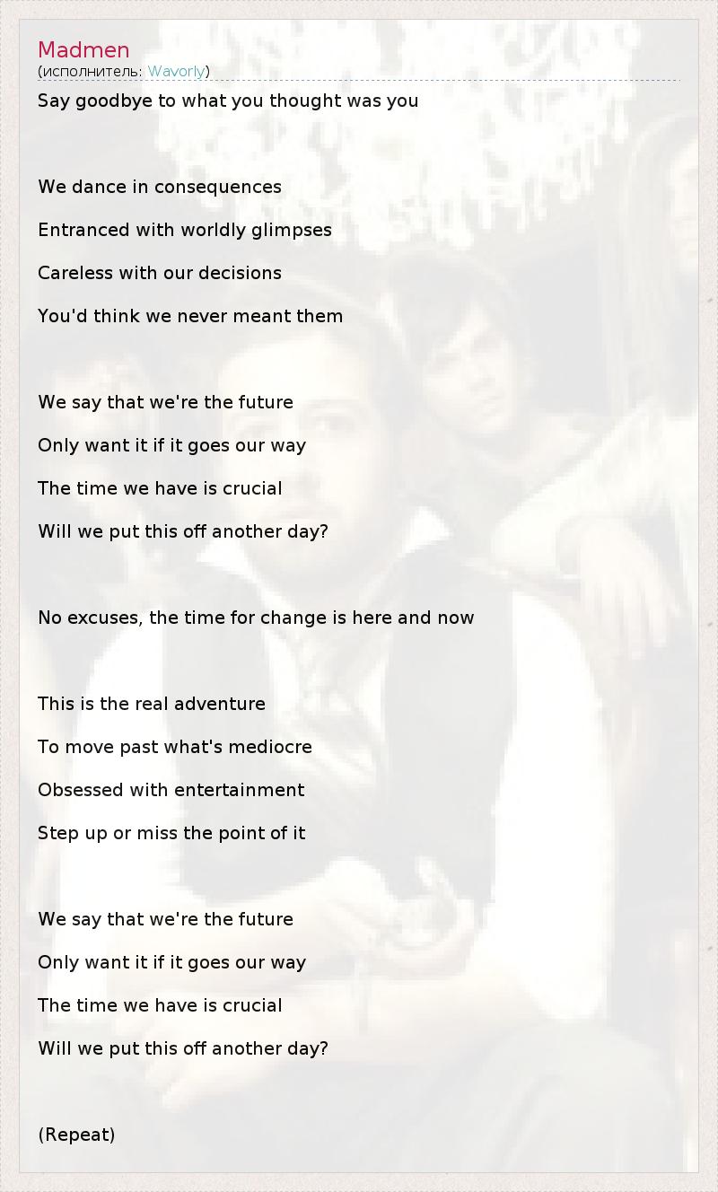 Это интересно:Wavorly - американская христианская рок-группа из города Тапело (штат Миссиссипи), образованная в 2001 году под первоначальным названием Freshmen 15 и выпустившая под этим именем два независимых альбома. Состав:Дэйв Стобэлл (Dave Stoball) - вокал, ритм-гитараСет Фармер (Seth Farmer) - бэк-вокал, гитараМэтт Лотт (Matt Lott) - басРаян Кун (Ryan Coon) - клавишныеДжейми Хейс (Jaime Hays) - барабаны (2006–2010)... продолжение