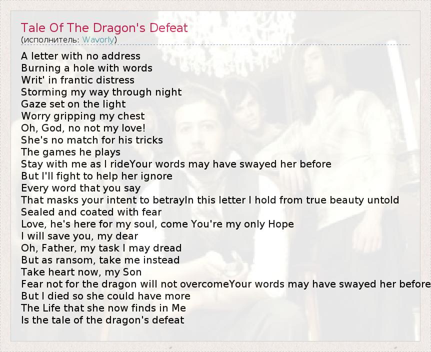 А как ты думаешь, о чем песня "Tale Of The Dragon's Defeat" ?