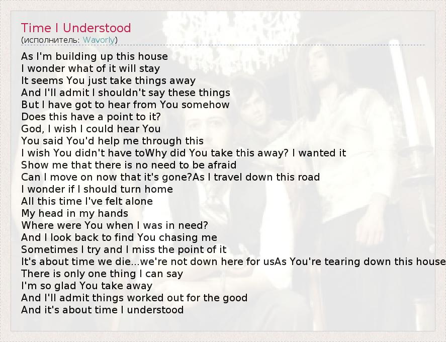 А как ты думаешь, о чем песня "Time I Understood" ?