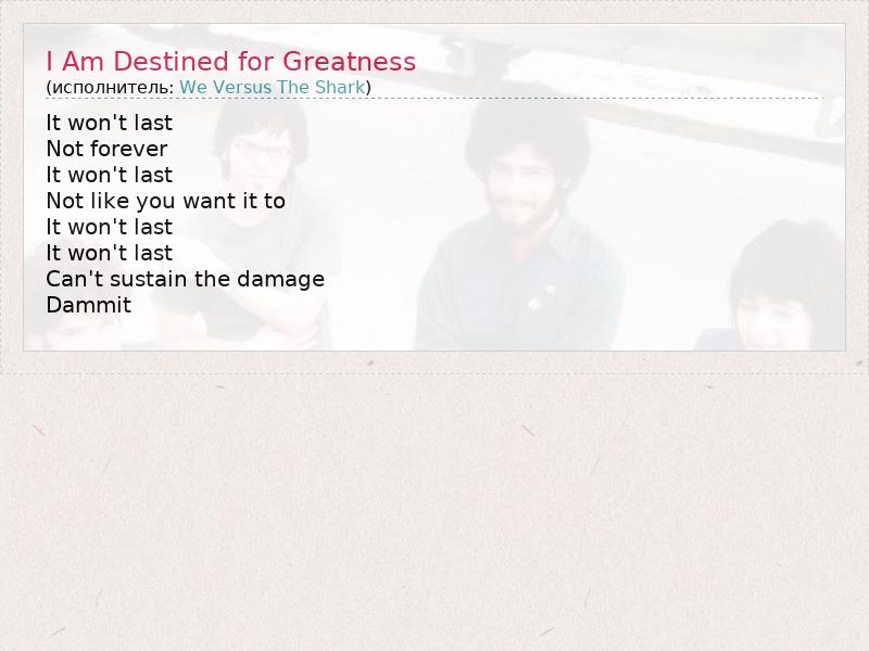 А как ты думаешь, о чем песня "I Am Destined for Greatness" ?