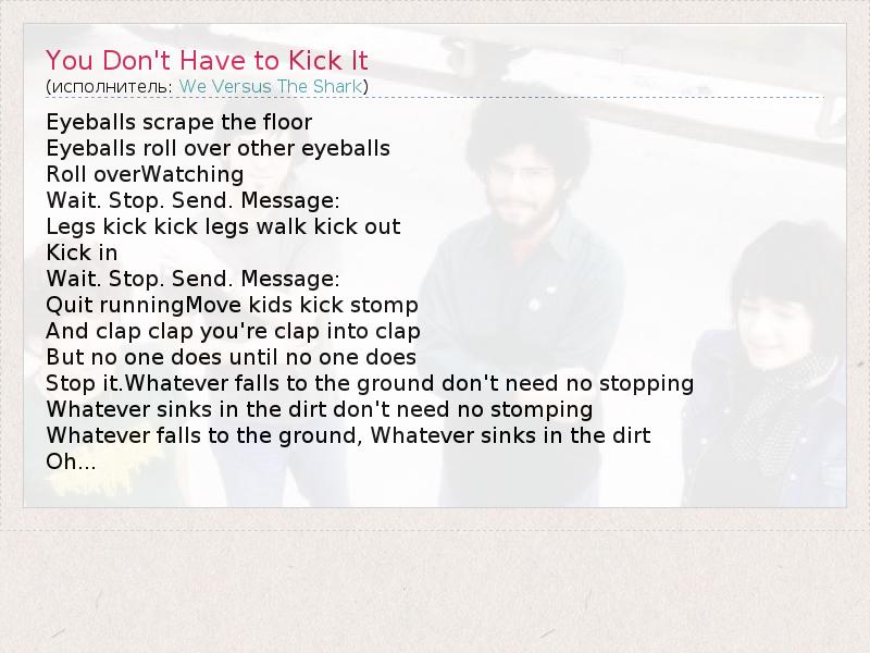А как ты думаешь, о чем песня "You Don't Have to Kick It" ?