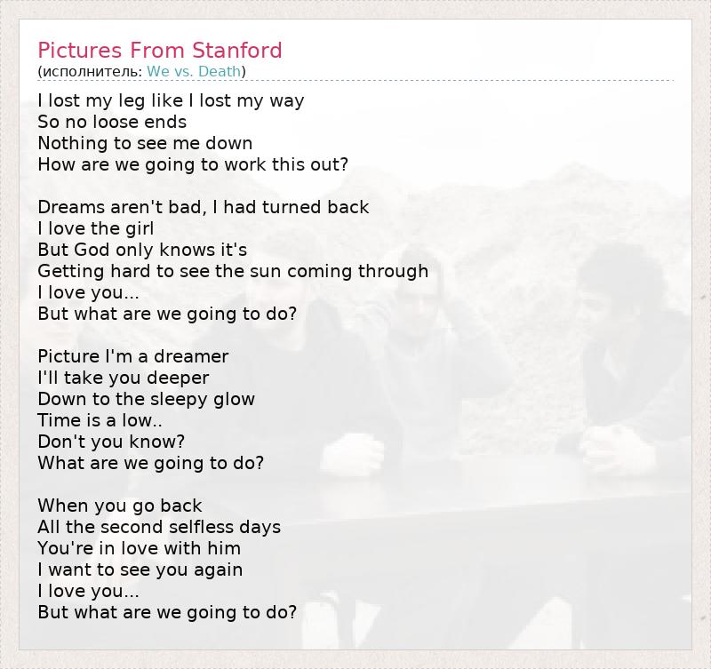 А как ты думаешь, о чем песня "Pictures From Stanford" ?