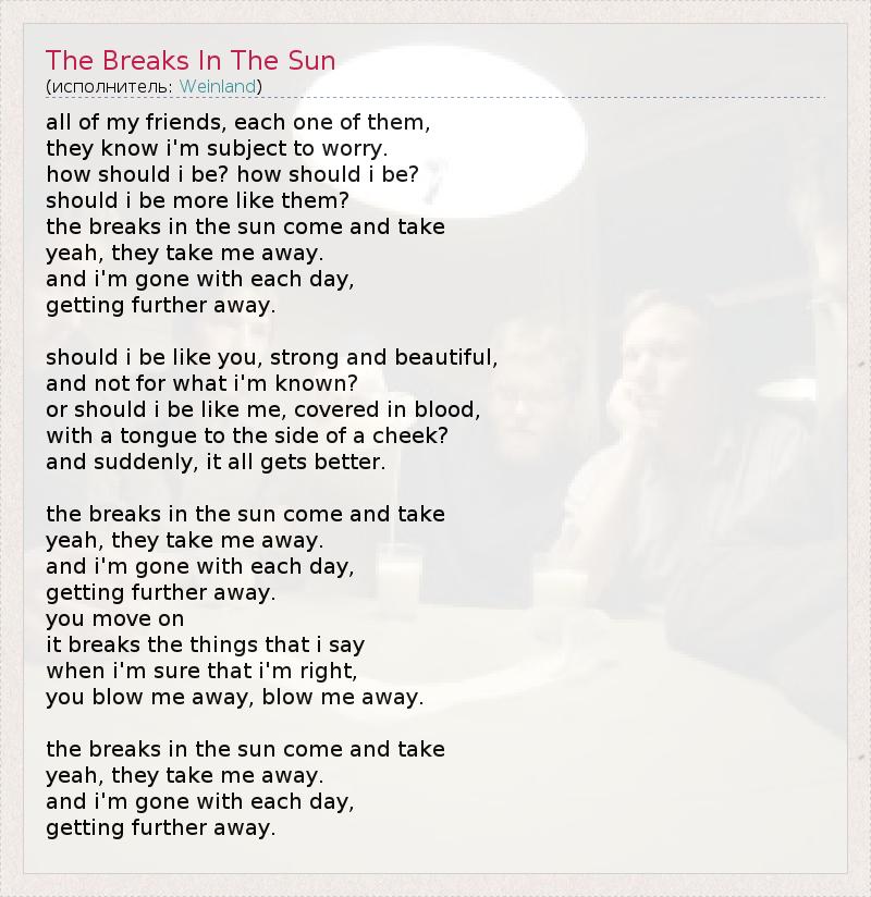 А как ты думаешь, о чем песня "The Breaks In The Sun" ?