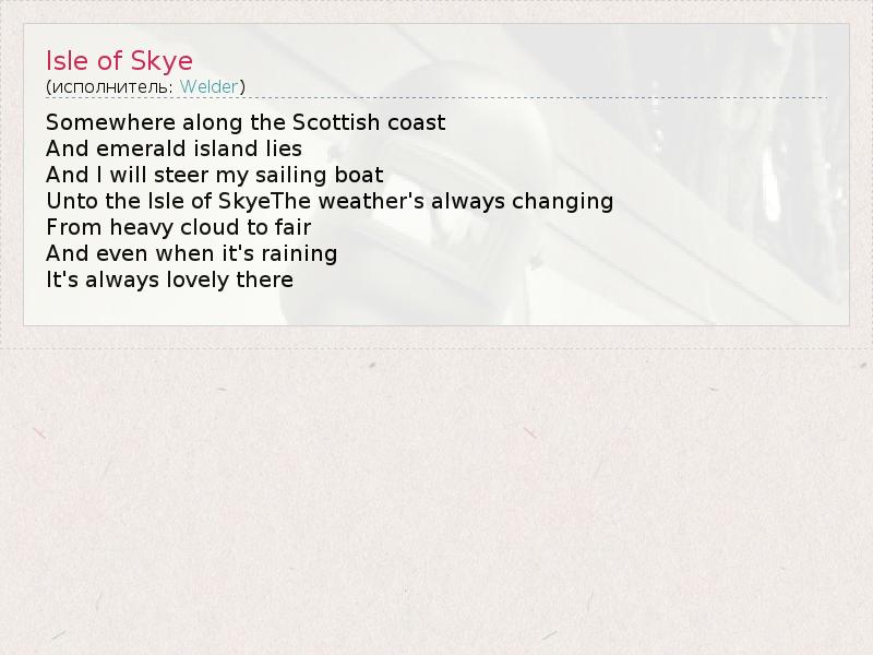 А как ты думаешь, о чем песня "Isle of Skye" ?