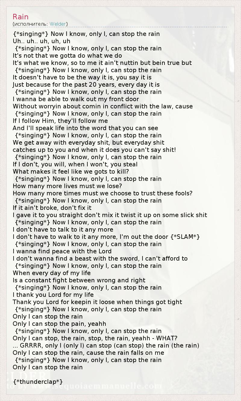 Only I can stop, the rain, stop, the rain, yeahh - WHAT?