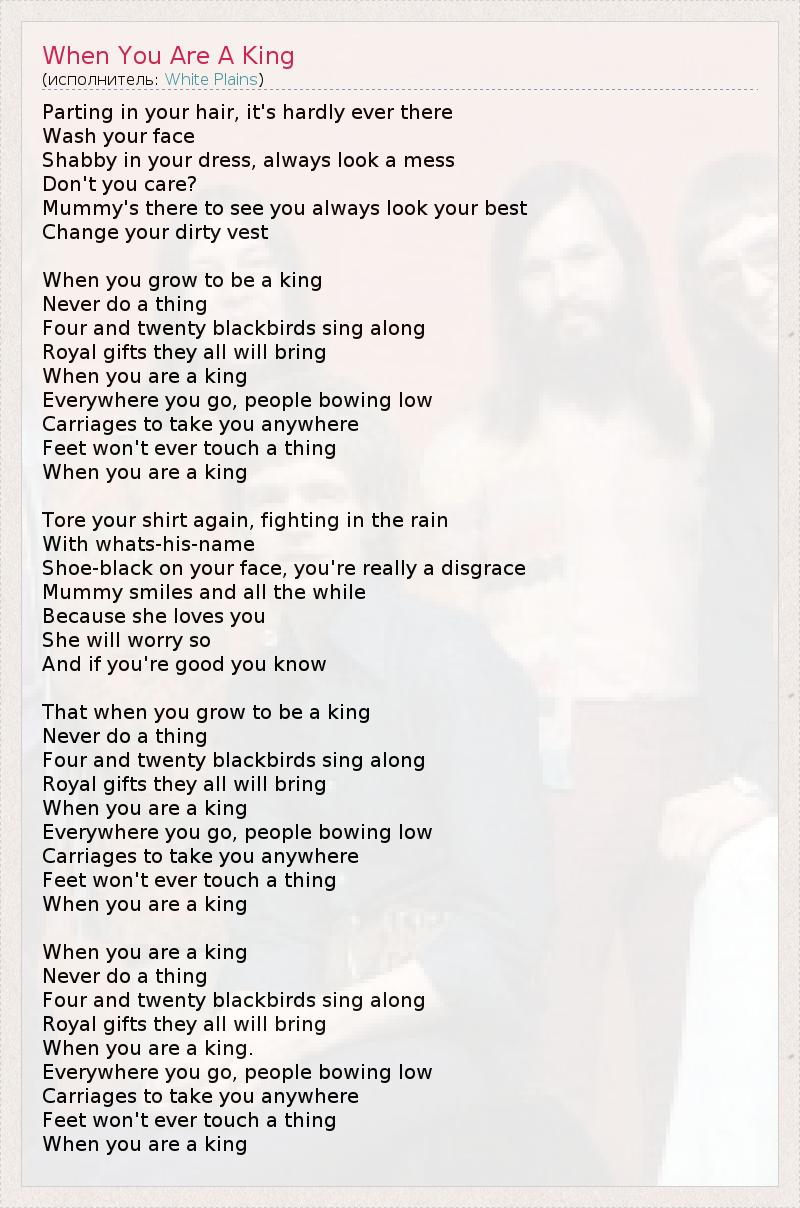 А как ты думаешь, о чем песня "When You Are A King" ?