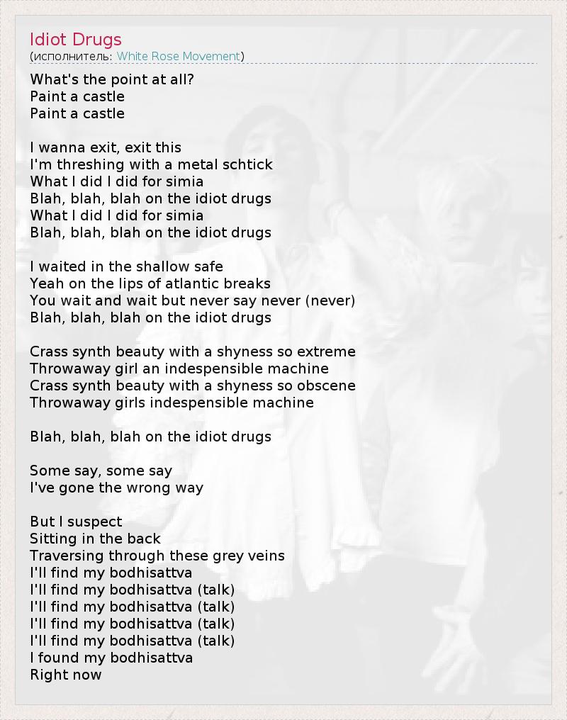 А как ты думаешь, о чем песня "Idiot Drugs" ?