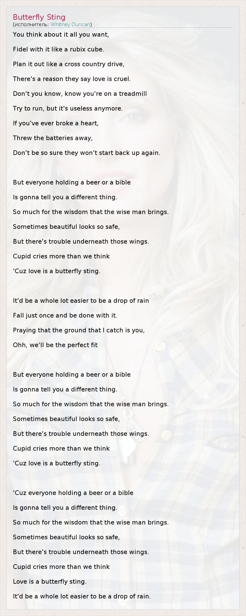 А как ты думаешь, о чем песня "Butterfly Sting" ?