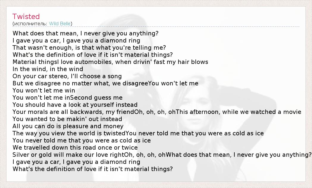 А как ты думаешь, о чем песня "Twisted" ?