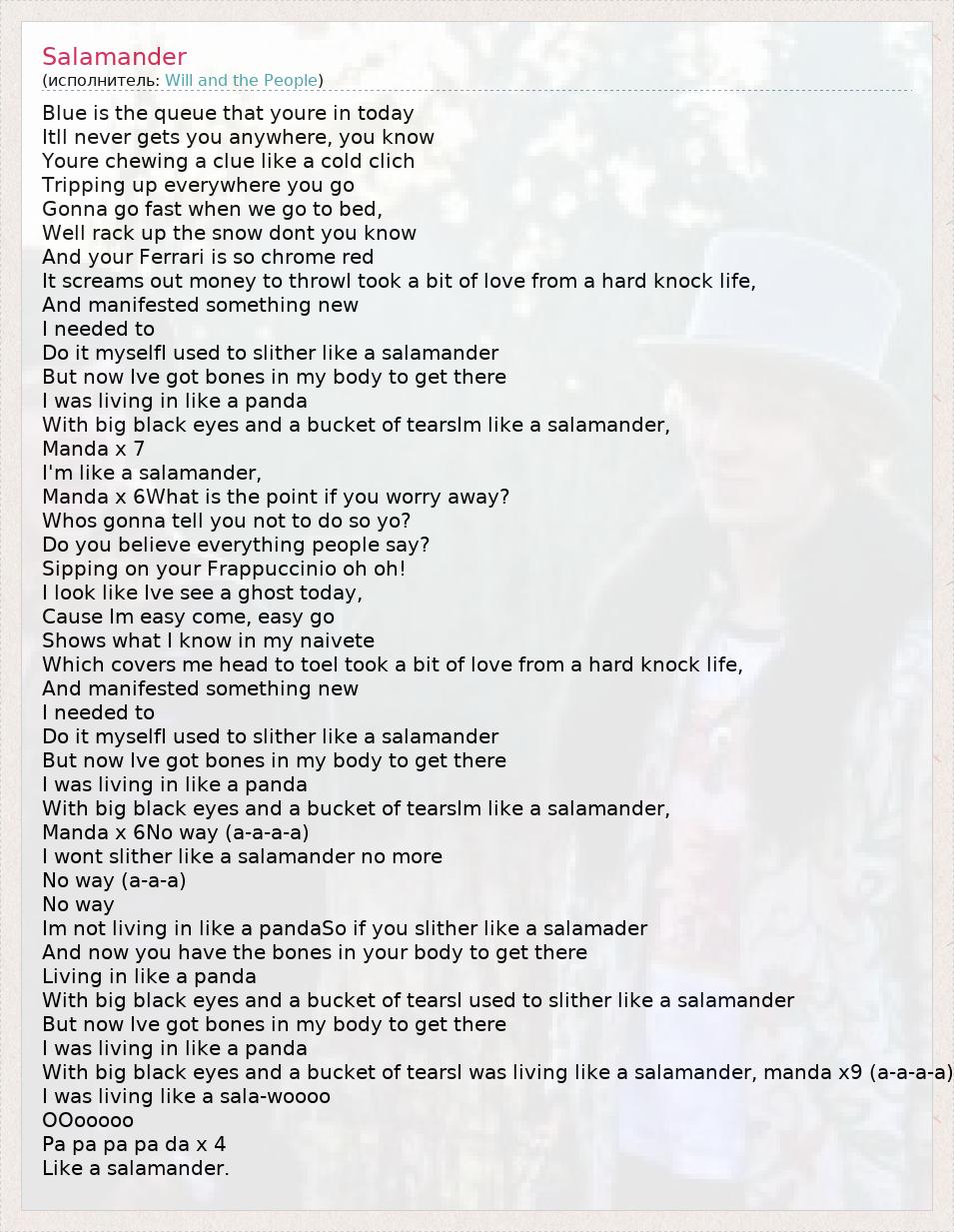 А как ты думаешь, о чем песня "Salamander" ?