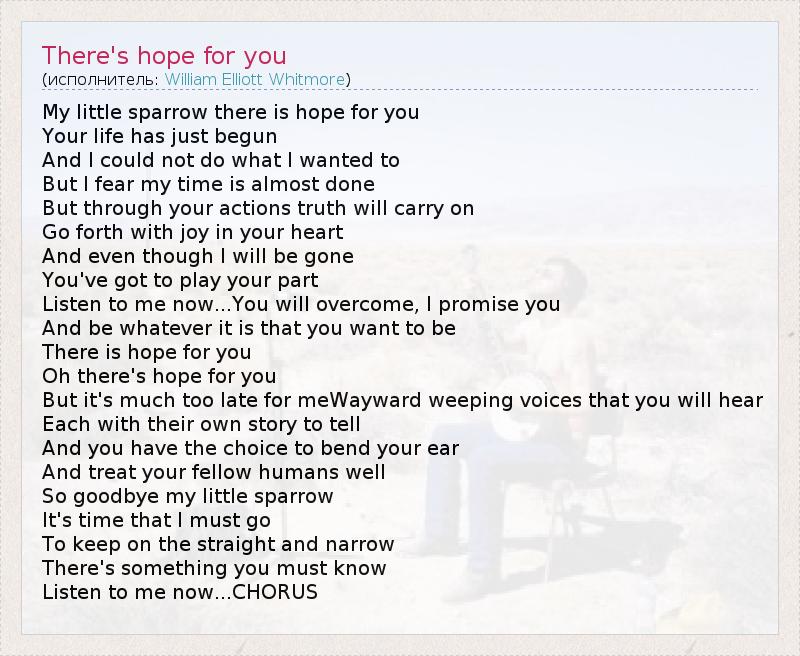 А как ты думаешь, о чем песня "There's hope for you" ?