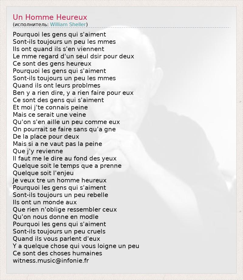 А как ты думаешь, о чем песня "Un Homme Heureux" ?