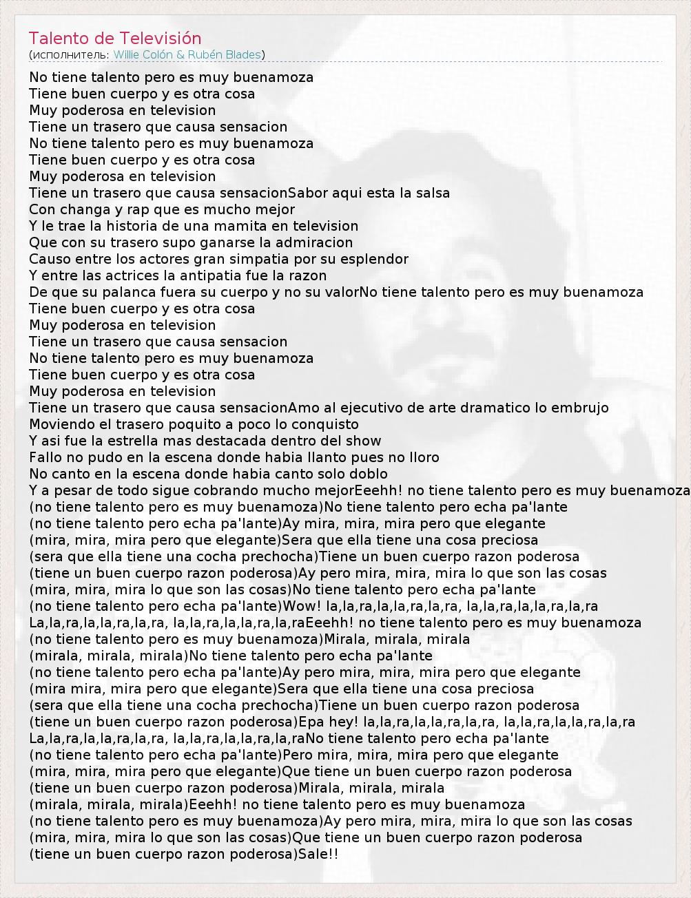 А как ты думаешь, о чем песня "Talento de Televisión" ?