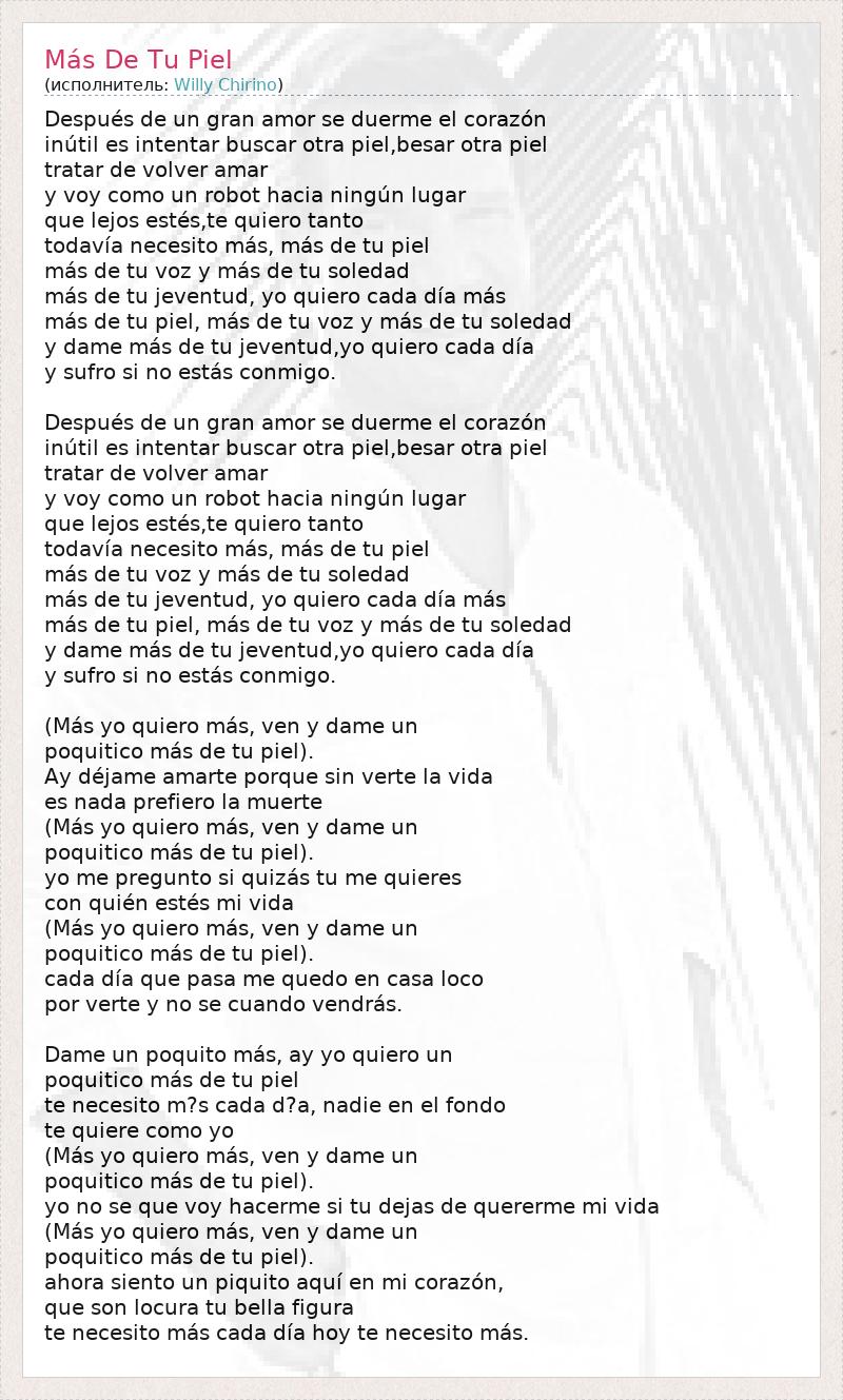 Todavia Necesito más, Mas De ту Piel