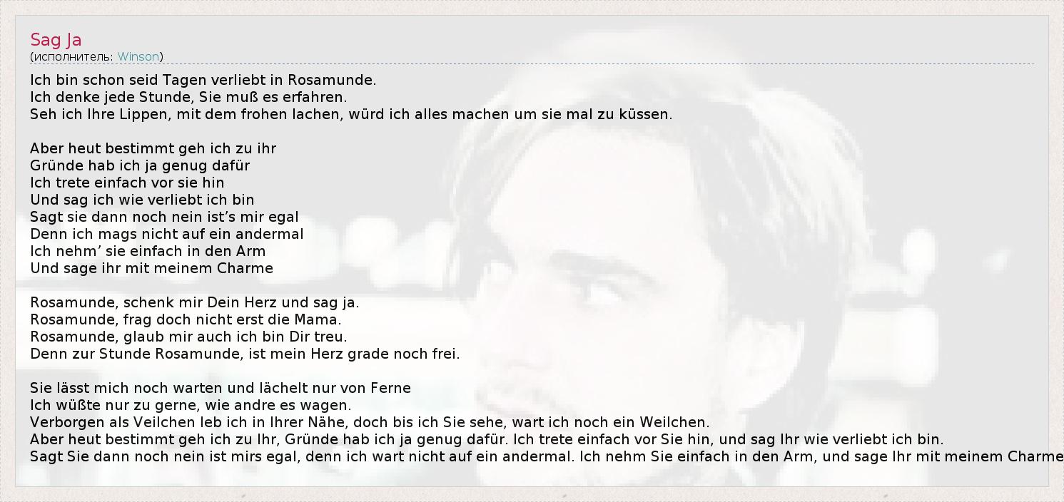 А как ты думаешь, о чем песня "Sag Ja" ?