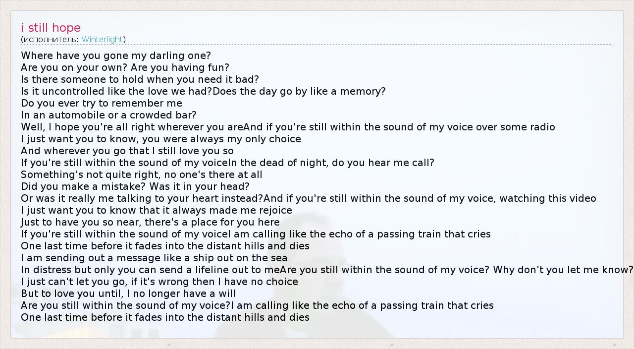 Are you still within the sound of my voice?I am calling like the echo of a passing train that cries