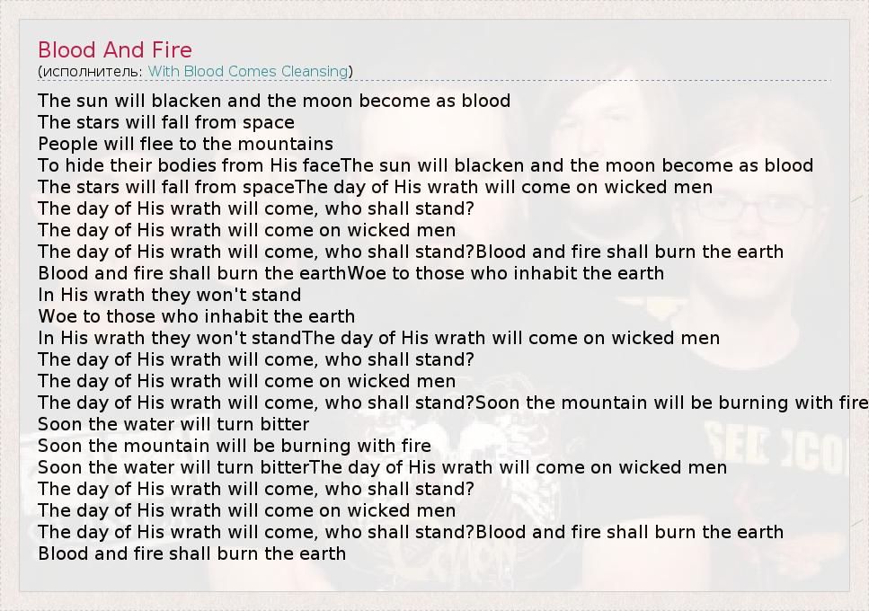 А как ты думаешь, о чем песня "Blood And Fire" ?