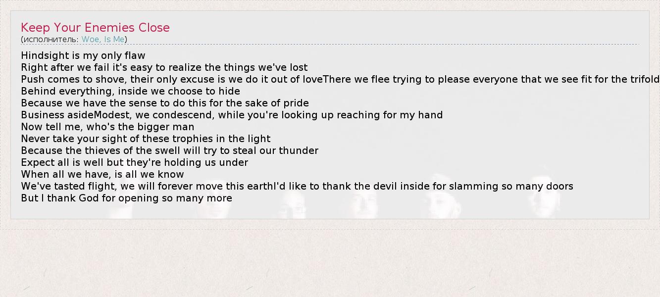 А как ты думаешь, о чем песня "Keep Your Enemies Close" ?