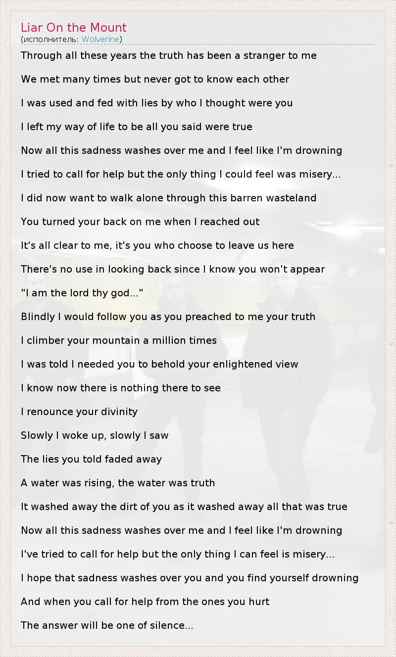 А как ты думаешь, о чем песня "Liar On the Mount" ?