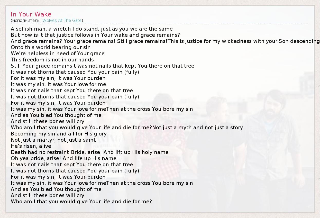 А как ты думаешь, о чем песня "In Your Wake" ?