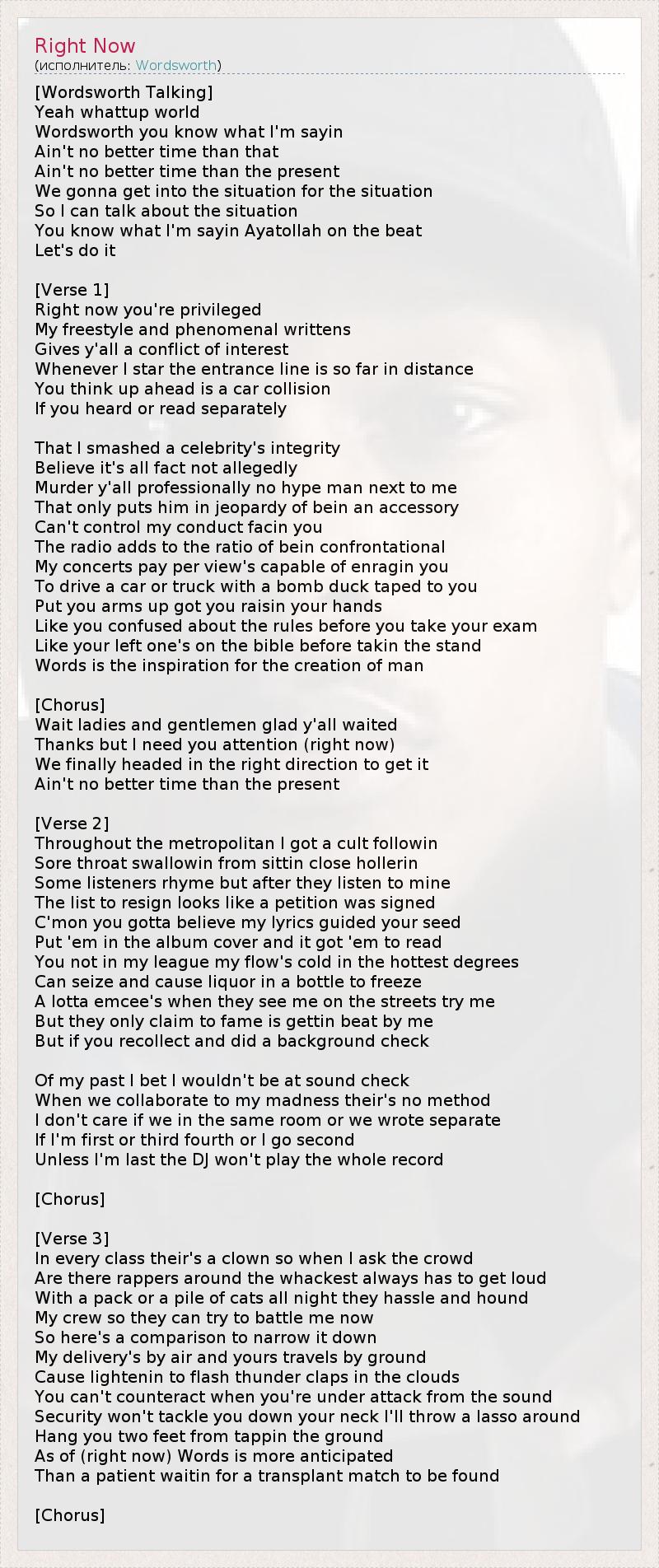 А как ты думаешь, о чем песня "Right Now" ?