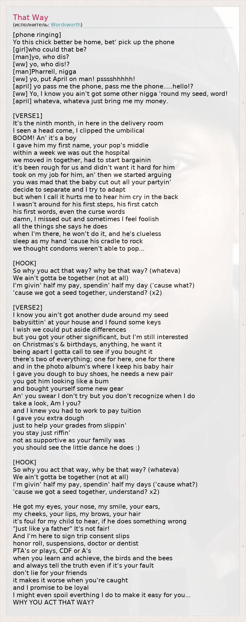[ww] Yo, I know you ain't got some other nigga 'round my seed, word!