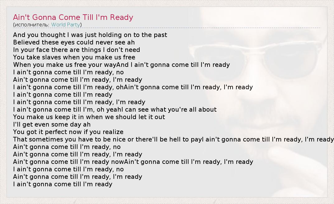 А как ты думаешь, о чем песня "Ain't Gonna Come Till I'm Ready" ?