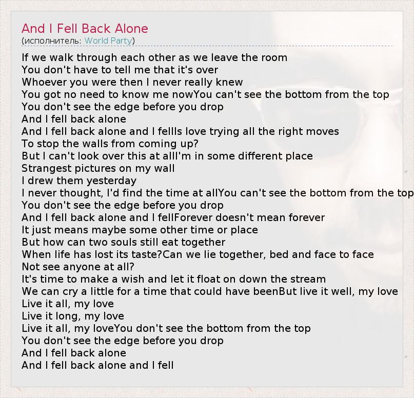 А как ты думаешь, о чем песня "And I Fell Back Alone" ?