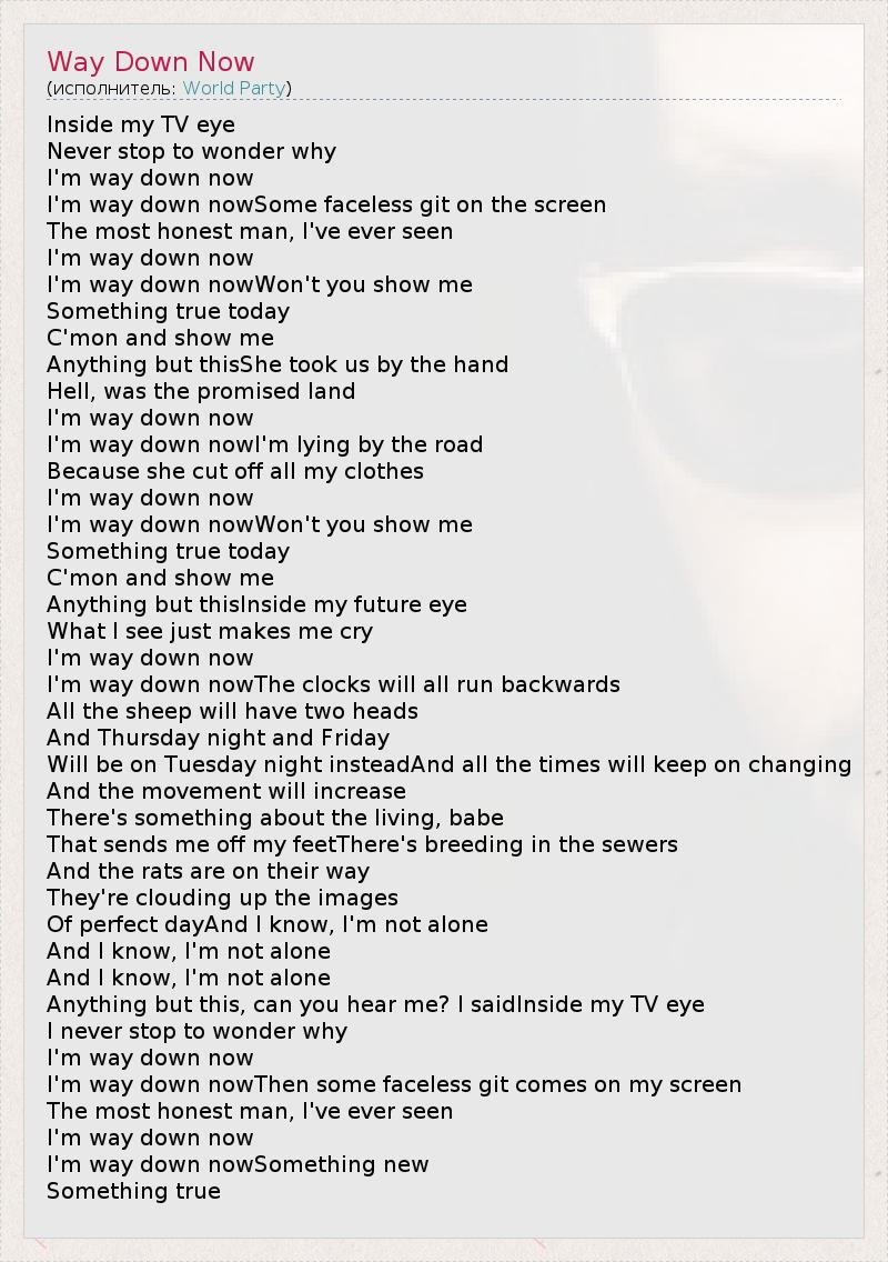 А как ты думаешь, о чем песня "Way Down Now" ?